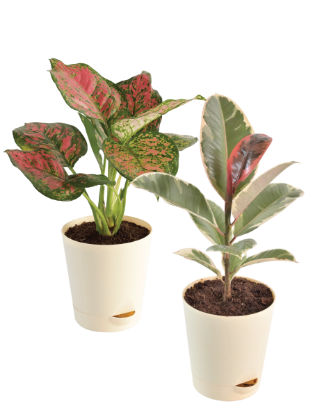 Plants are essential for healthy living, both indoors and outdoors. To ensure that you don’t compromise the air you breathe in at home, we have curated plant sets that together minimise a majority of indoor pollutants. Both the Rubber variegated and Aglaonema pink have been acclaimed globally as the best for the job.