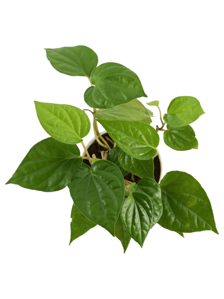 The Betel Leaf, or Magai Paan is a creeper with glossy heart-shaped leaves that are popularly consumed in India. It is fairly easy to grow even for new plant parents with a little care. Let it climb or trail and it will be a great addition to both your collection and food habit as it is known to cool the body and provides many nutrients.